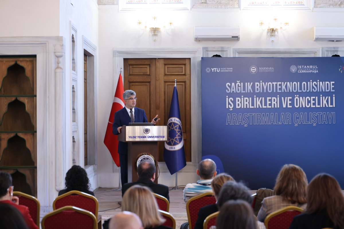 Sağlık Biyoteknolojisi Mükemmeliyet Ortak Uygulama ve Araştırma Merkezi (SABİOTEK) tarafından düzenlenen “Sağlık Biyoteknolojisinde İş Birlikleri ve Öncelikli Araştırmalar Çalıştayı”, 20 Kasım 2025 tarihinde Yıldız Teknik Üniversitesi Davutpaşa Kampüsü’nün tarihi atmosferi Otağ-ı Hümayun’da gerçekleştirildi.